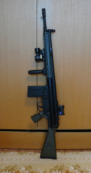 SR25 URX od PJ, uvnitř 6.03 Aimtop hlaveň, Guarder HOP komora, pružina Guarder 130, píst s kovovým ozubením, nějaká ta lepší vzduchotechnika, atp. + nástřik Krylon khaki http://img8.imageshack.us/img8/8325/img0530s.jpghttp://img152.imageshack.us/img152/5209/img0524n.jpg
