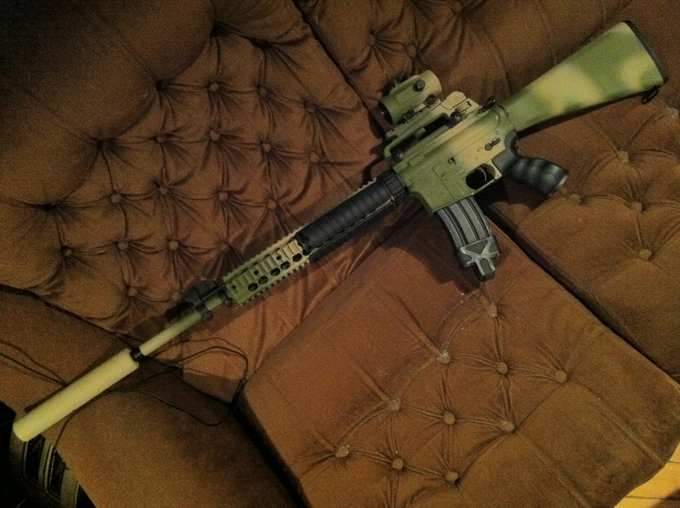 Pěkná kombinace barev .-) , ale stříknul bych i ty krytky RIS, klidně jen jednobarevně, ale aby nebyli černý.
