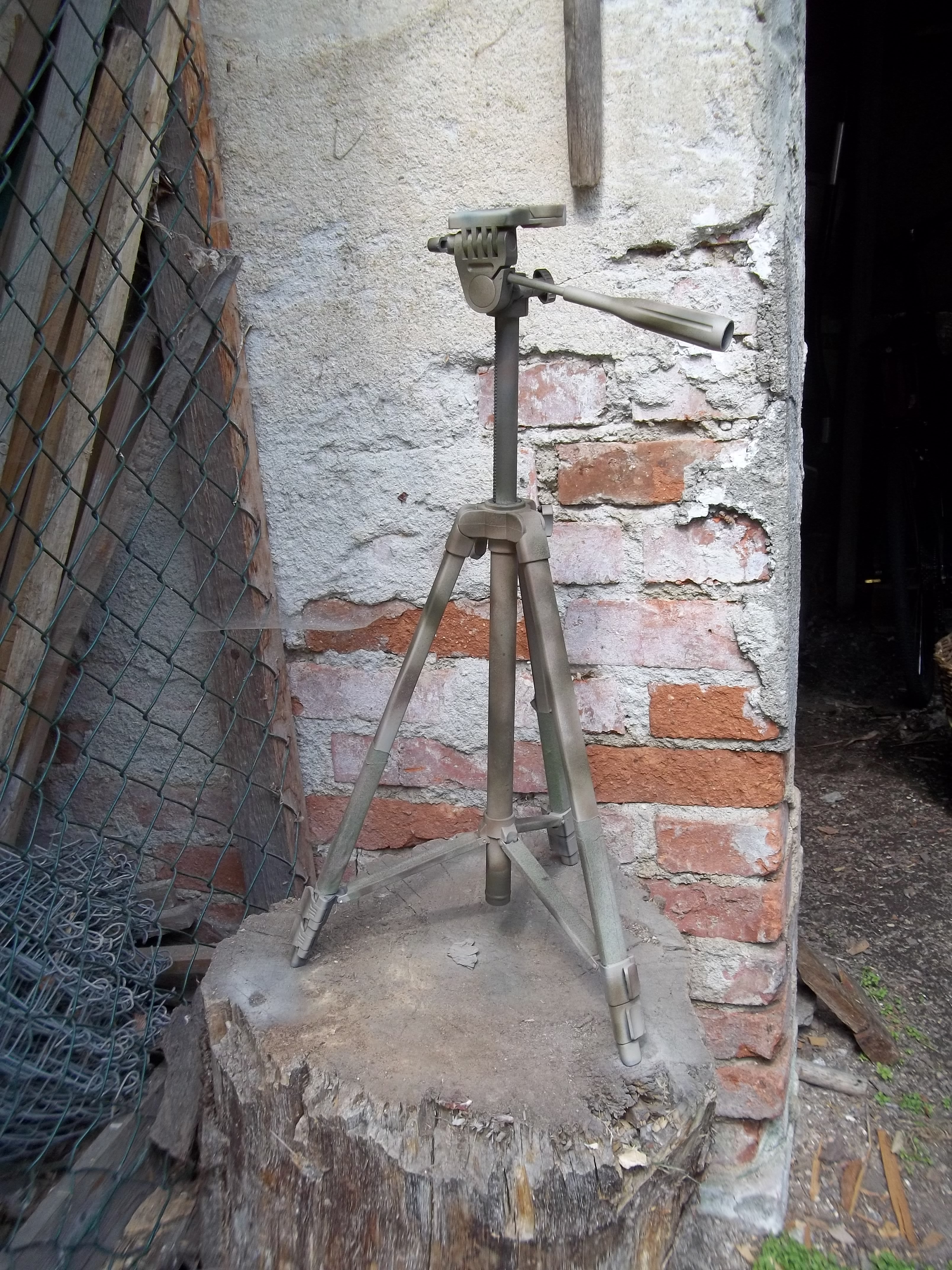 Doufám, že nikomu nebude vadit když přidám fotky nástřiku stativu na monokulár/pušku použité spreje (u mě již klasicky  ) - sniper paint barva: pouštní, hnědá, zelená