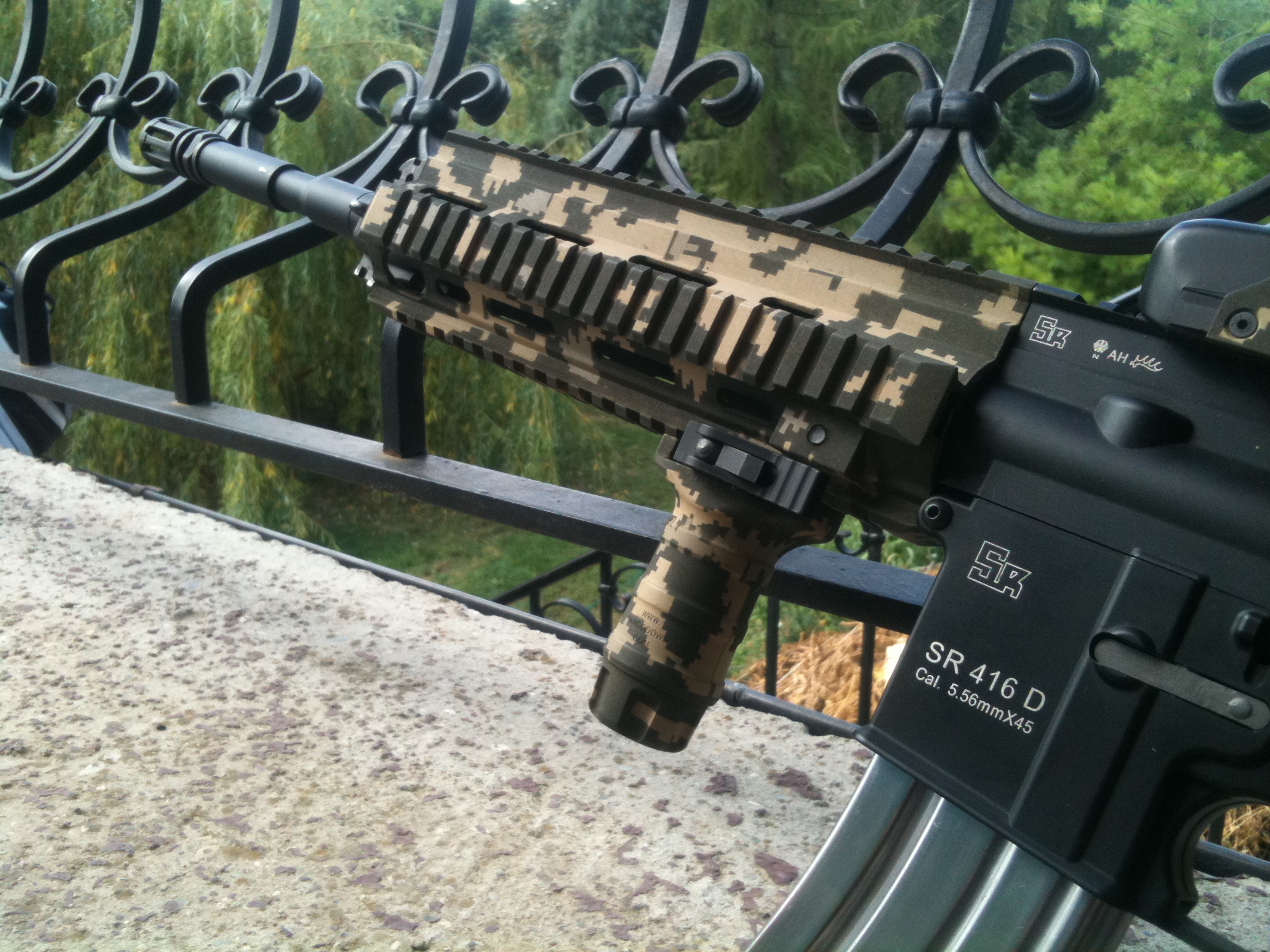 Pokud se nemýlím, tak některý verze HK416 měli stříbrnou trubku pažby. Takže to není až tak unkošér. Moc se mi to nelíbí (nemám rád kvéry stříklí do digitálu) ale za to jak jsi si s tím vyhrál máš můj respekt