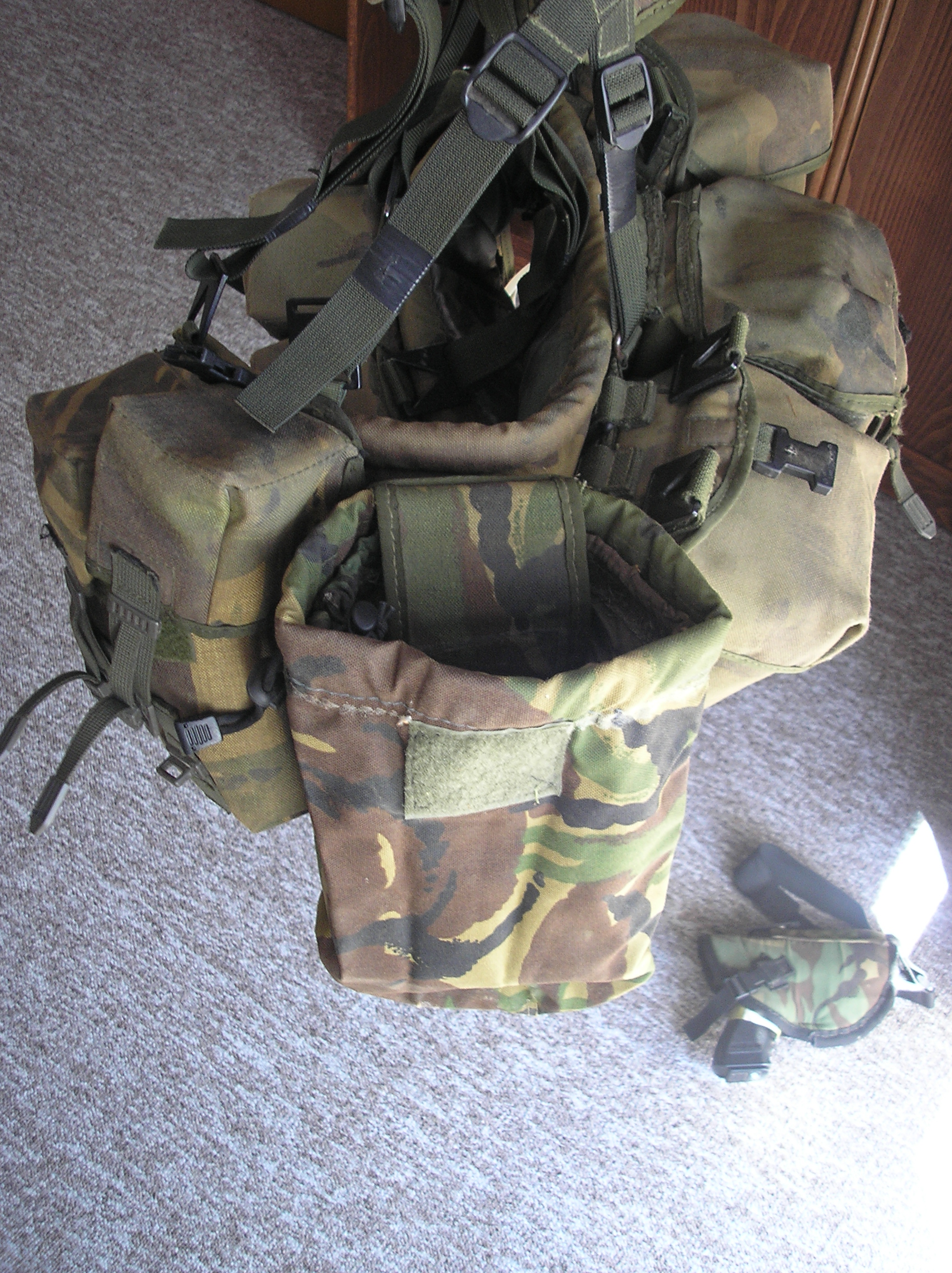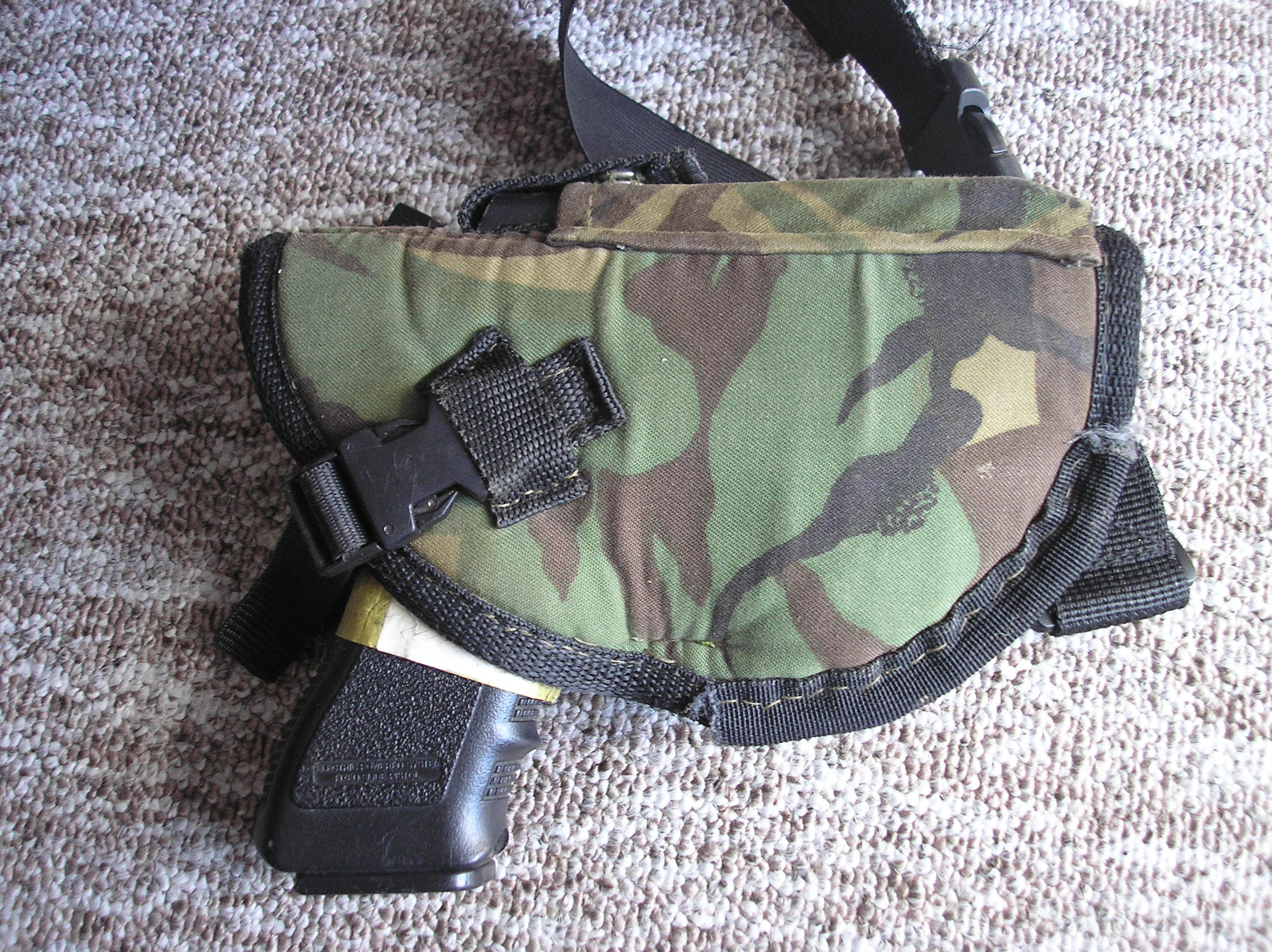 jsem uz se dlouho chtel dat nakej svuj vytvor .. siju teda jen v ruce a jsem mistr improvizace ...  pistol holster DPM: je to takovy hodne pankovy sity ze zad staryho baglu a potahly latkou z combat smocku, naprt jsou ty cerny lemy a doplnky .. v planu je verze 2 z DPM cordury a zelenejma lemama a par dochytavkama .. odhazovak DPM: sitej z cordury DPM (kryci car odstrizenej z all arms ruckascku - "televize") vychytal jsem si ho presne dle mejch predstav, opatren klasickyma PLCE sponama na opasek