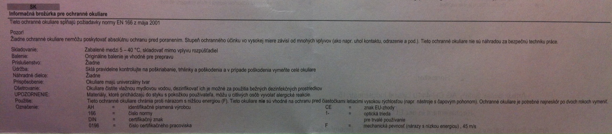 Cavte, tieto okuliare som si kupil v hornbachu. Ma s nimi alebo s podobnymi niekto skusenosti? Prikladam fotky, na poslednej vidiet normu ktoru splnaju. ( EN 166 ) Posluzia mi na AS?