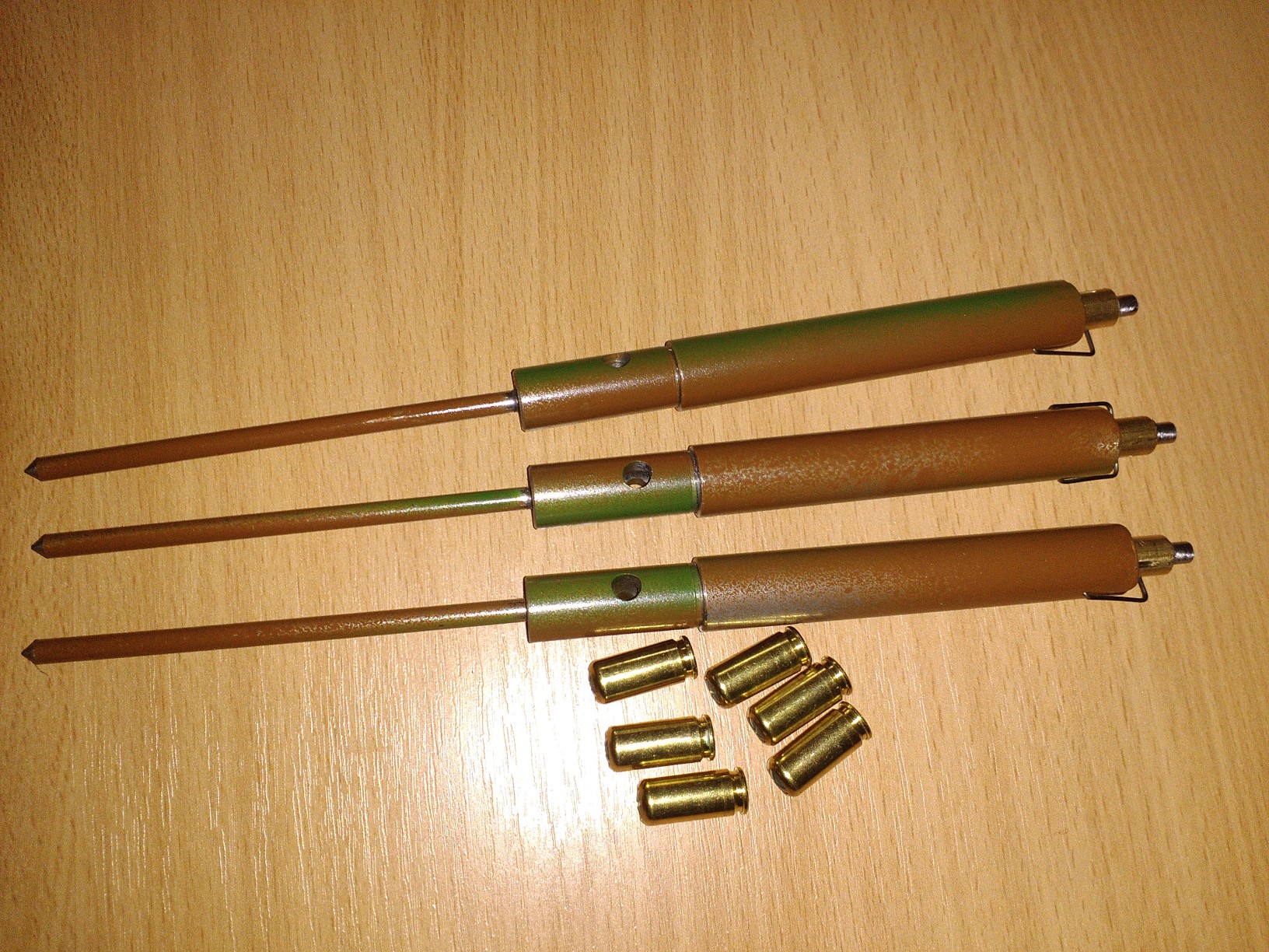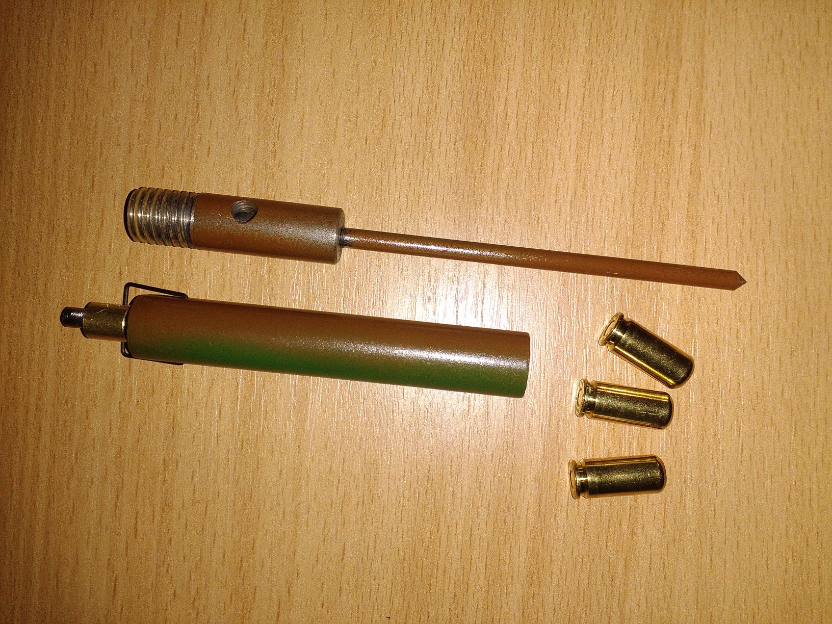 rád bych ukázal mojí konstrukci tohoto taktického doplňku pro naše sportovní účely. Jedná se o znovupoužitelnou akustickou minu která využívá 9mm plynové nábojky. Její provoz je tedy velice levný. Konstrukce je uzpůsobena k zapíchnutí do země či připevnění na magnet. Spoušťový mechanismus je dostatečně citlivý a opatřený bezpečnostní pojistkou. Jako aktivační provázek bohatě postačuje běžná nit tmavé barvy - v terénu je velice obtížné si ji všimnout. Ideální je běžná bavlněná nit která se po čase v přírodě rozloží.