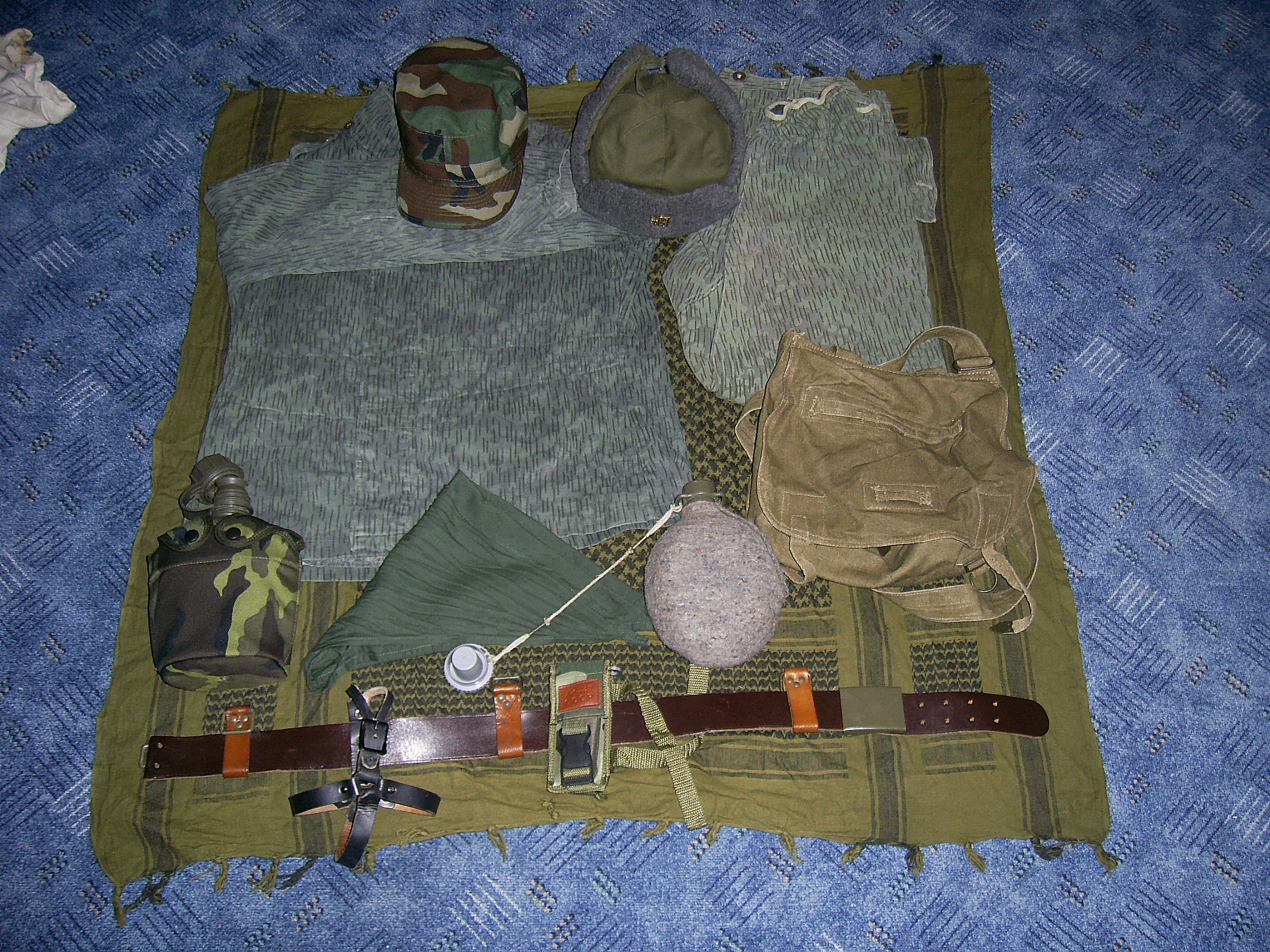 ja jsem dost spokojen s bw cepka bluza kalhoty pasek NVA-nemecka vychodni armada polni lahev NVA potom velice dobra a osvedcena mala polni vz.60 kanady vz.60,ceska celta a malou sumku NVA a ted si koupim lamanou skalu bluzu a kalhoty vz 85 pracovni ceske nebo jine jednobarevne