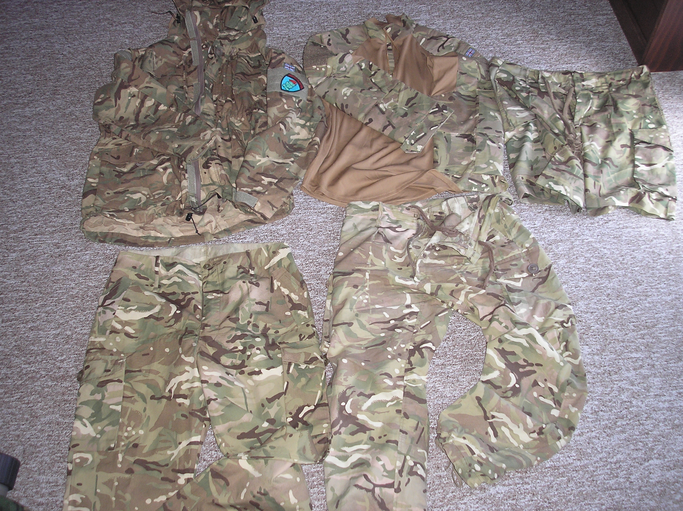 Tak jsme zas jednou byli za "zasobovacim dustojnikem" ... foto c1: smock combat, UBACS, temerate a tropical combat trousers + shorts v MTP foto c2: wet weather trousers s2000 (trochu apgrejt starejch goracu), combat smock 80´ oboje v DPM, americky nomexky a slusiva tenka fleese hucka na zimu pod blembak ... no a coolmaxovejch tricek neni nikdy dost foto c3: lighweight a tropical combat trousers, kloboucek a utilitka v desertu a suprovej shemag nazaver