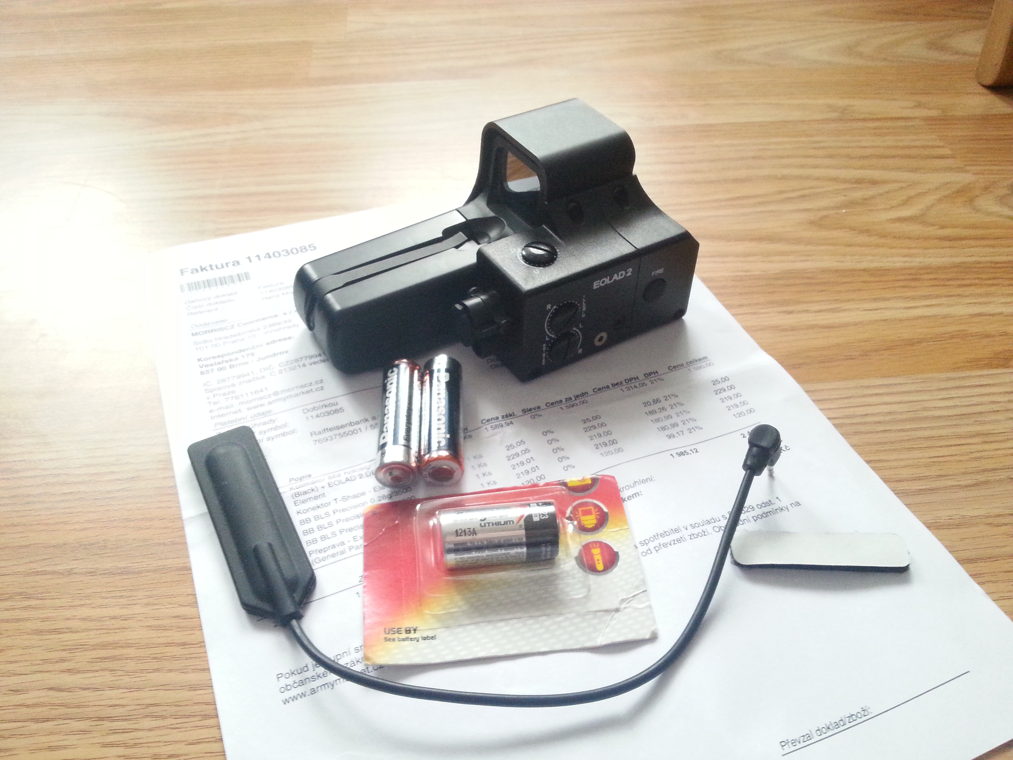 Zdravím,prodám tento kolimátor 552 holosight EOTECH + EOLAD 2 DEVICE - Element,se zárukou, koupeno 2.7.2014,hráno 2 akce,konstrukce nepoškrábaná,vše jako nové, upnutí na běžný RIS lišty,nechávám k tomu fakturu,dálkový spínač,lepící suchý zip,2x nové baterky AA Panasonic,2x nové baterky typ 123 Energizer v hodnotě cca 200kč. Jinak vše funguje,seřízení, zaměřovač tak modré přisvícení(vyskoušeno na noční akci v budovách a supr). Laser (spíš ukazovátko) taky funguje ALE nejde štelovat doleva a doprava, to je jediná závada, buď poslat na reklamaci, nebo šikovný ruce si poradí.Cena 1000kč+poštovné,nebo osobní odběr, info mailem nebo i mobil, stačí sms a co nejdříve zavolám zpět. Mail:fery18@seznam.cz Tel . 603933317