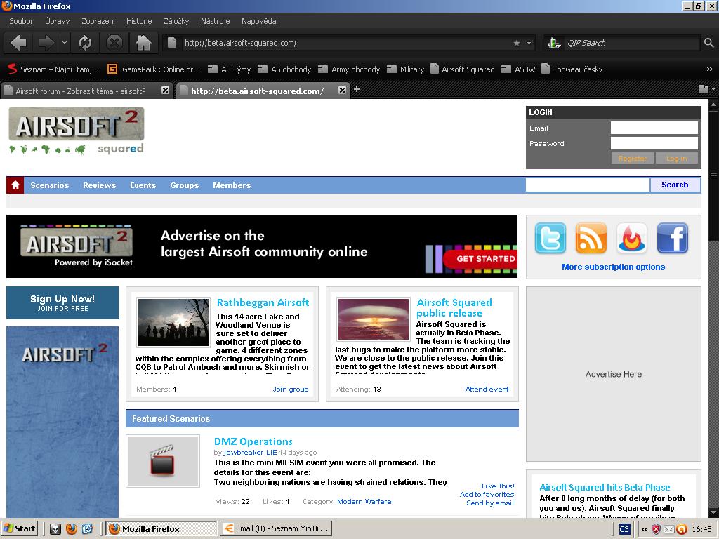 Zdá se, že airsoft squared is up and running...minimálně tam jde normálně se regnout, už tam mám účet.
