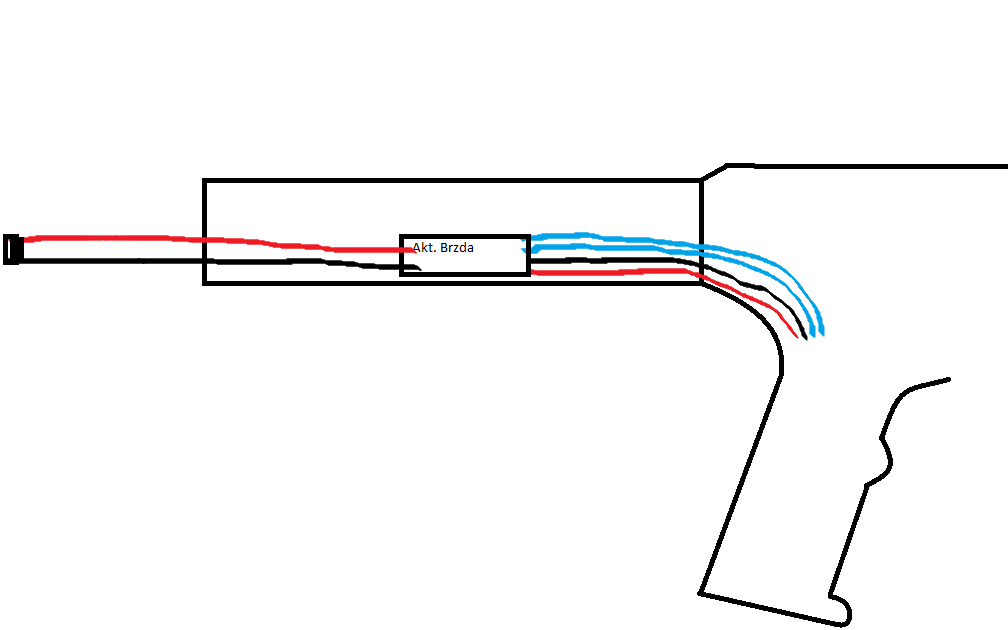 No... taky se mi víc líbí verze s tím že bych do víčka co se zasunuje před trn udělal díru na kabely kde by po kousku byl hned konektor a otočila by se kapsička, tam když by se pažba zasunula a tak by se kabel ohnul nahoru obloučkem ale ničemu by to nevadilo. Problém je jen v tom, kam umístit tu brzdu. To jak jsem nakreslil by bylo tak že bych vytáhnul kabely od motoru na délku trnu, za ním bych je ustřihl, napájel brzdu, ohnul kabely a zamáčkl do trnu. Z toho už by vedly kabely na délku vytažené pažby. Raši bych to ani do toho trnu netahal, ale nevim kam bych dal tu brzdu :/
