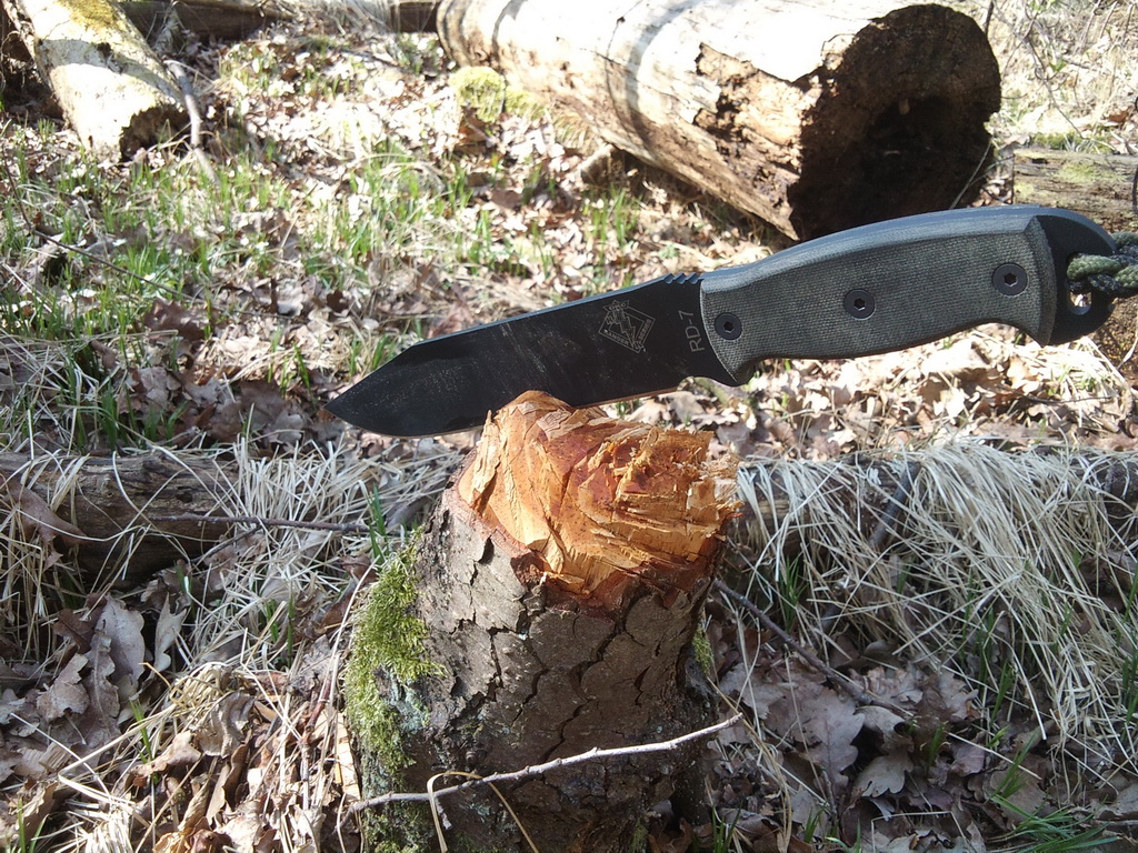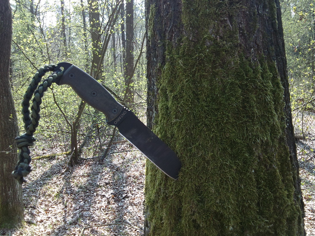 Pro inspiraci, pár fotek mýho půlkilovýho mazlíka Je to velkej pracant z uhlíkovky.....jedinym seknutim se dá useknout 3-4cm silná syrová větev, s trochou trpělivosti lze pokácet strom(dub) kolem 15cm v průměru, naštípat špalky na oheň a s naprostou zručností seká kosti, krájí maso, cibulku i bůček před grilovánim  .......a na konci náročnýho dne pořád holí chlupy na předloktí Ranger RD-7 by Ontario