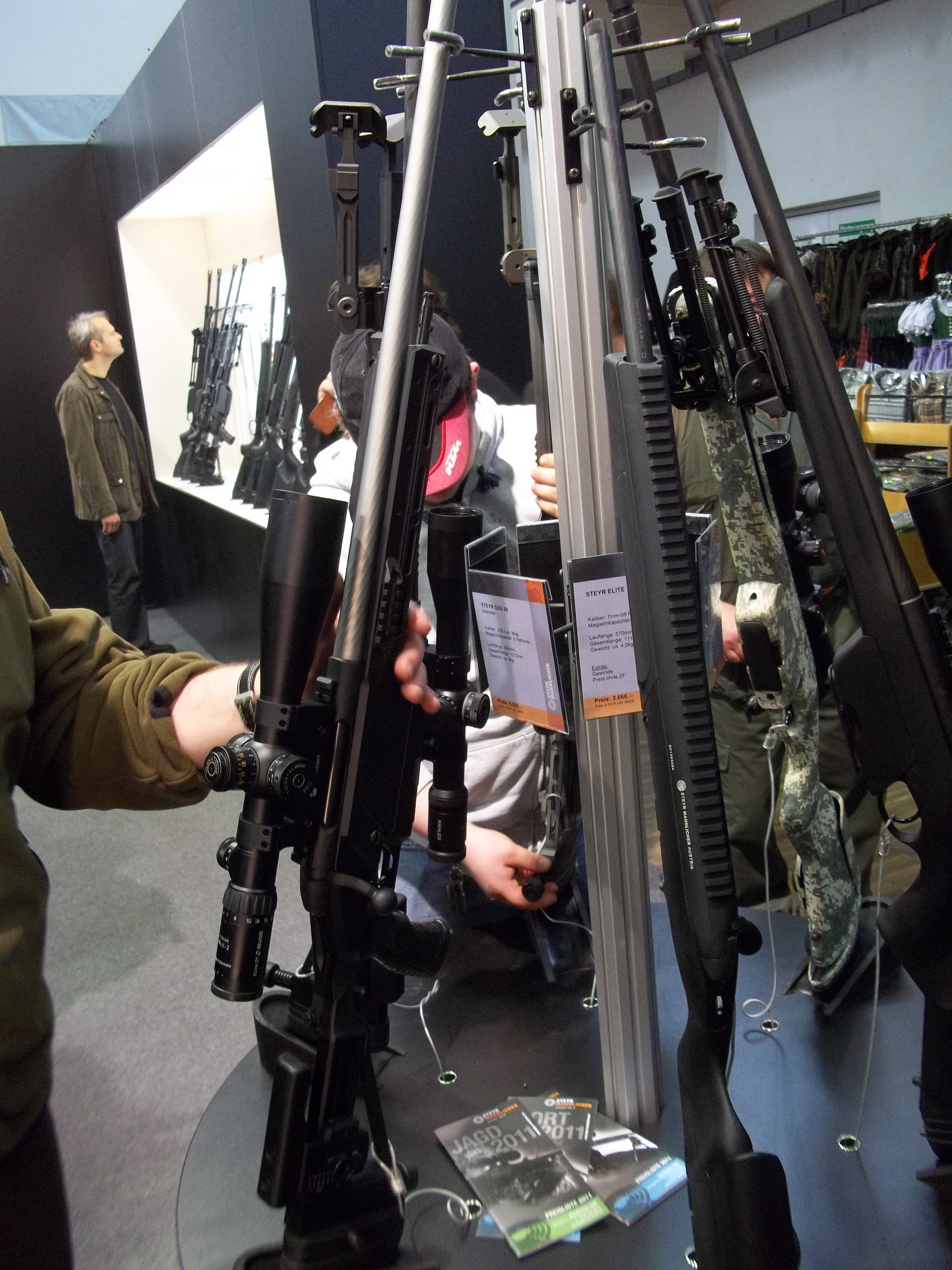 Doufám, že tímto nikoho neurazím, ale jelikož jsem včera navštívil již zmíněnou výstavu zbraní v salzburku přidal bych pár fotek ze soukromého alba kdyby se chtěl někdo kouknout. Bylo tam nepřeberné množství loveckých zbraní od kuovnic, brokovnic a všeho možného až to proč sem tam jel a to byly odstřelovačské sportovní i nesportovní pušky, spoustu nočních vidění a puškohledy nejlepší kvality na světě od výrobců jako je Zeiss, leopold, swarovsky atd. samozdřejmějsem něměl na to si koupit ani jeden z tehc levnejších puškohledů za 1500 eur tak jsem si je aspon ošahal a podíval se na ty krásky ;)