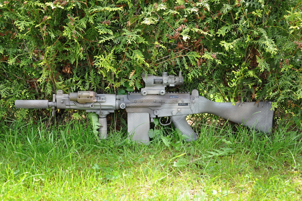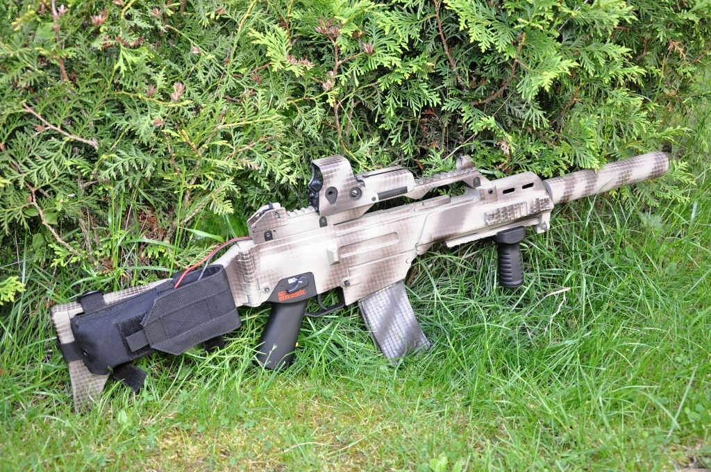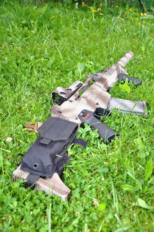 - zbraň je přestříkaná by DALI (krylon) - dodatečně přidány RIS na předpažbí - 4x ACOG (made in china) - vnitřek kompletě vyměněn, celý upgrade from HRABY - baterie LiPol