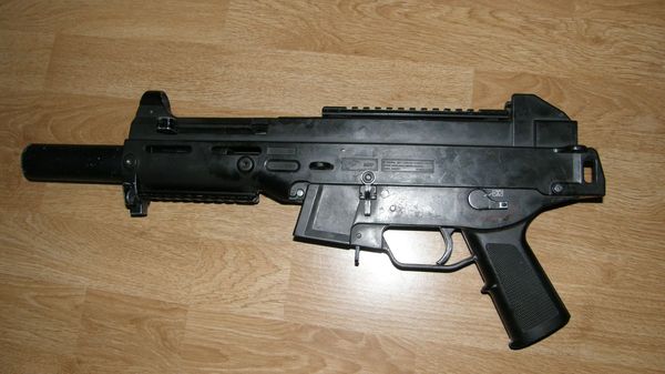 UMP double eagle zlomená pažba vyměněna za kus duralu ohlýho z vršku těla na rukojeť, tlumič (deep fire) zasunutý až do předpažbí Příloha: