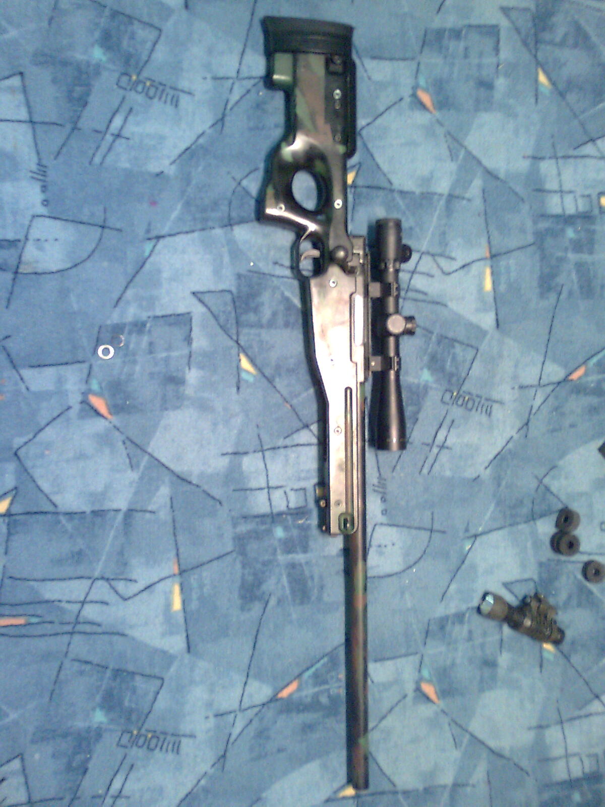 tady jsou moje guny, je tam M4 CQB od PJ, L96 (MB-01) od wellu s optikou M3, USP od DE sry za kvalitu fotek je to focený mobilem