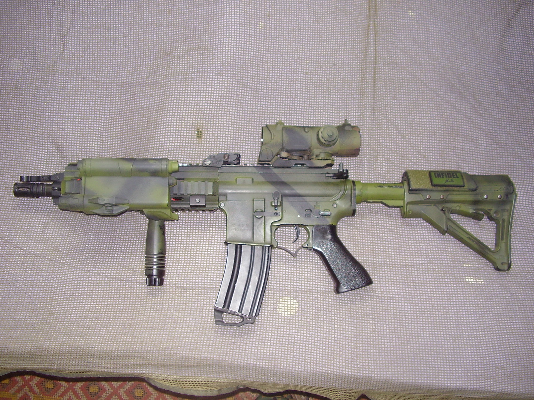 Mk. 18 mod O (M4 CQBR) Proč máš u tý kosy ten eotech v tom nejvíc nesmyslným místě jaký jde vymyslet? Zaručuju ti že tohle by v reálu nestřílelo.