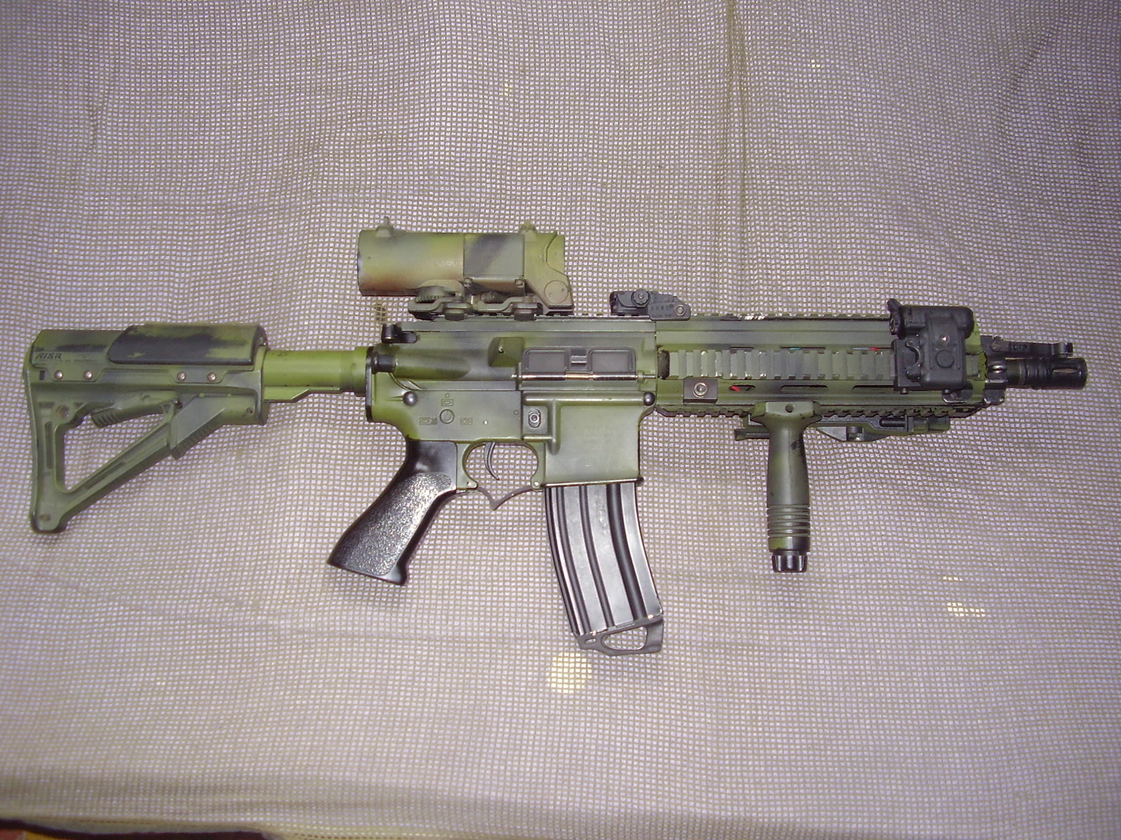 Mk. 18 mod O (M4 CQBR) Proč máš u tý kosy ten eotech v tom nejvíc nesmyslným místě jaký jde vymyslet? Zaručuju ti že tohle by v reálu nestřílelo. já vim no.  Tahle montáž je na AK. Nad závěr mi nejde dát protože hned pod ním vede pružina na vracení závěru a předpažbí není v rovině.
