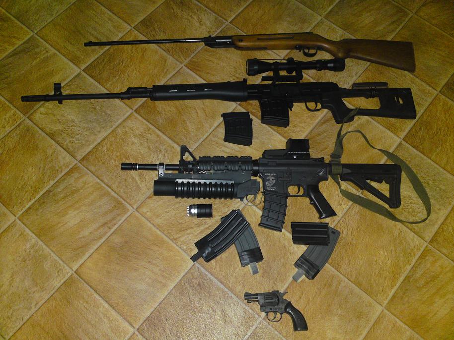 puškohled už nemám a snipu prodávám, M4 teď bude postupně dostávat úplně jiný vzhled, doma mám ještě USP (prodávám) a berettu M9 a ty nemám nafocený