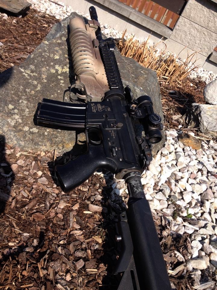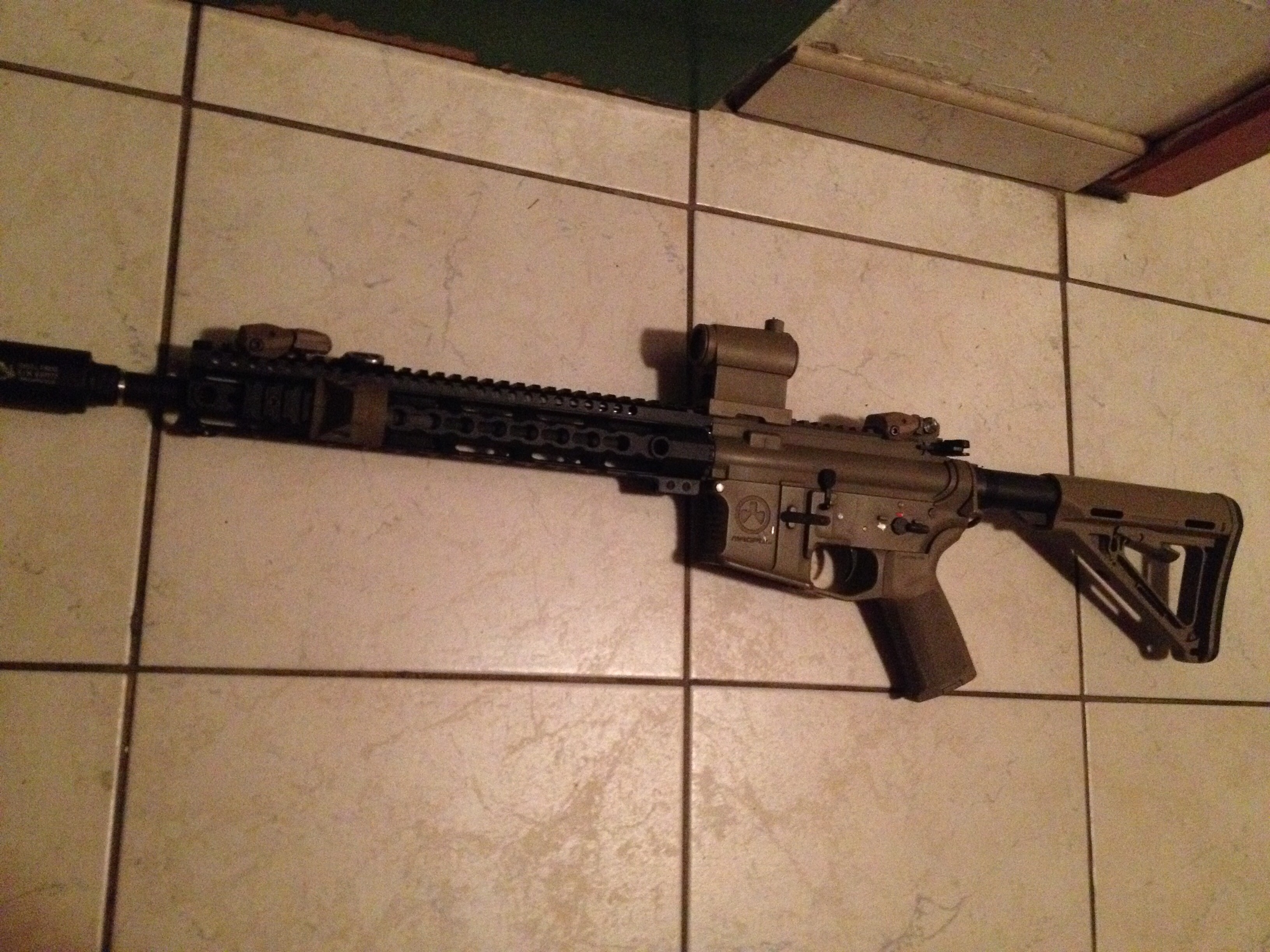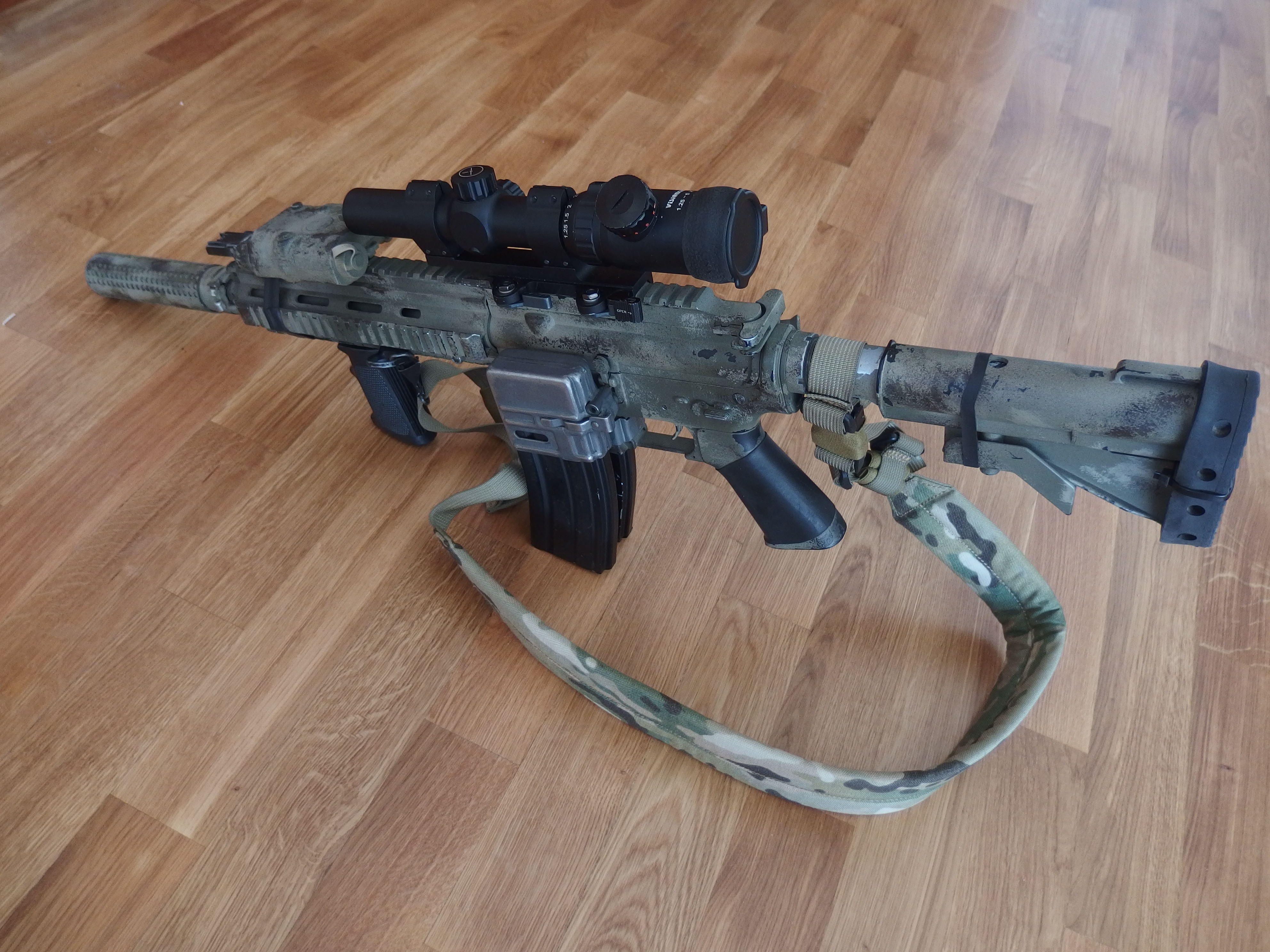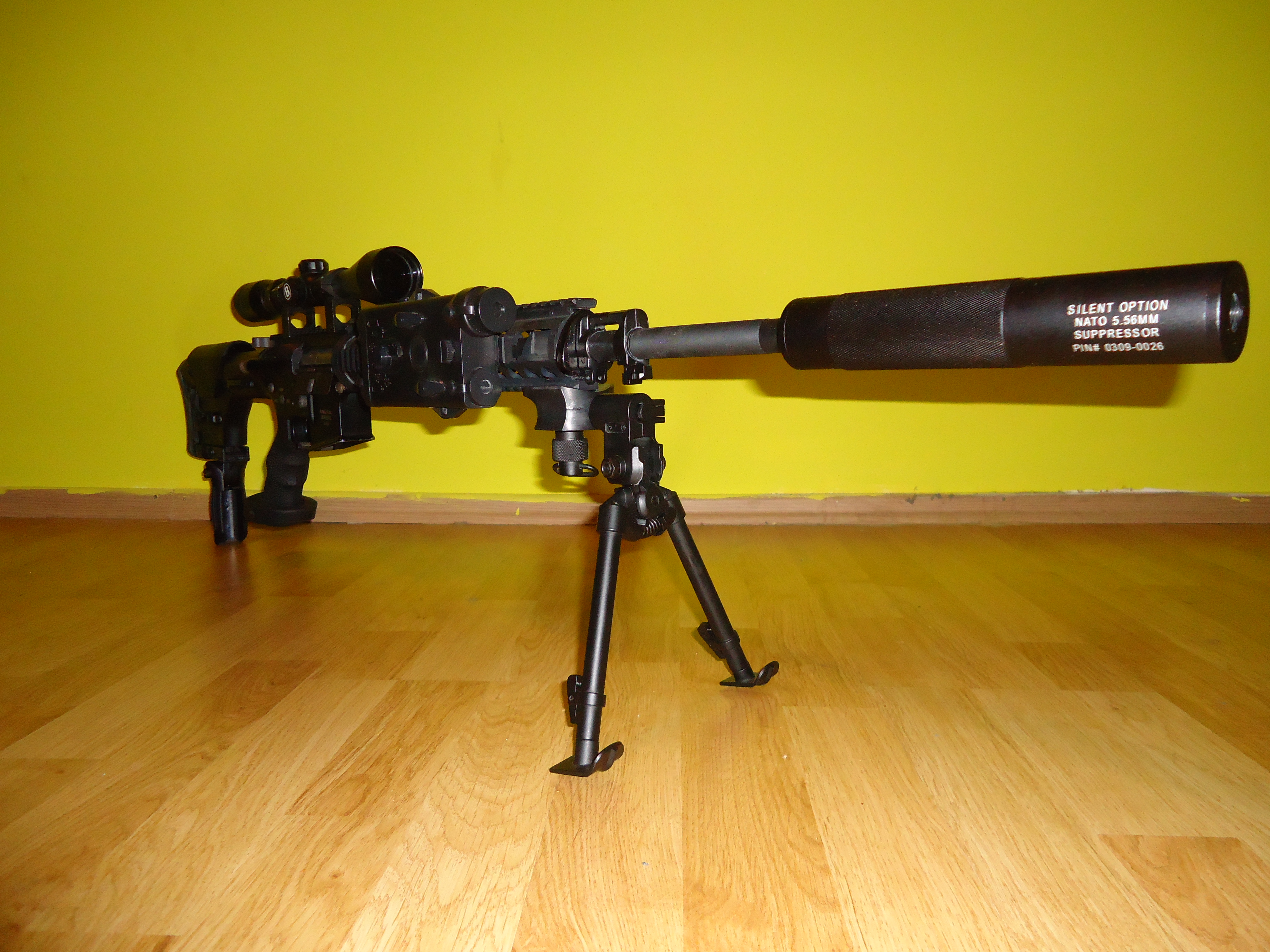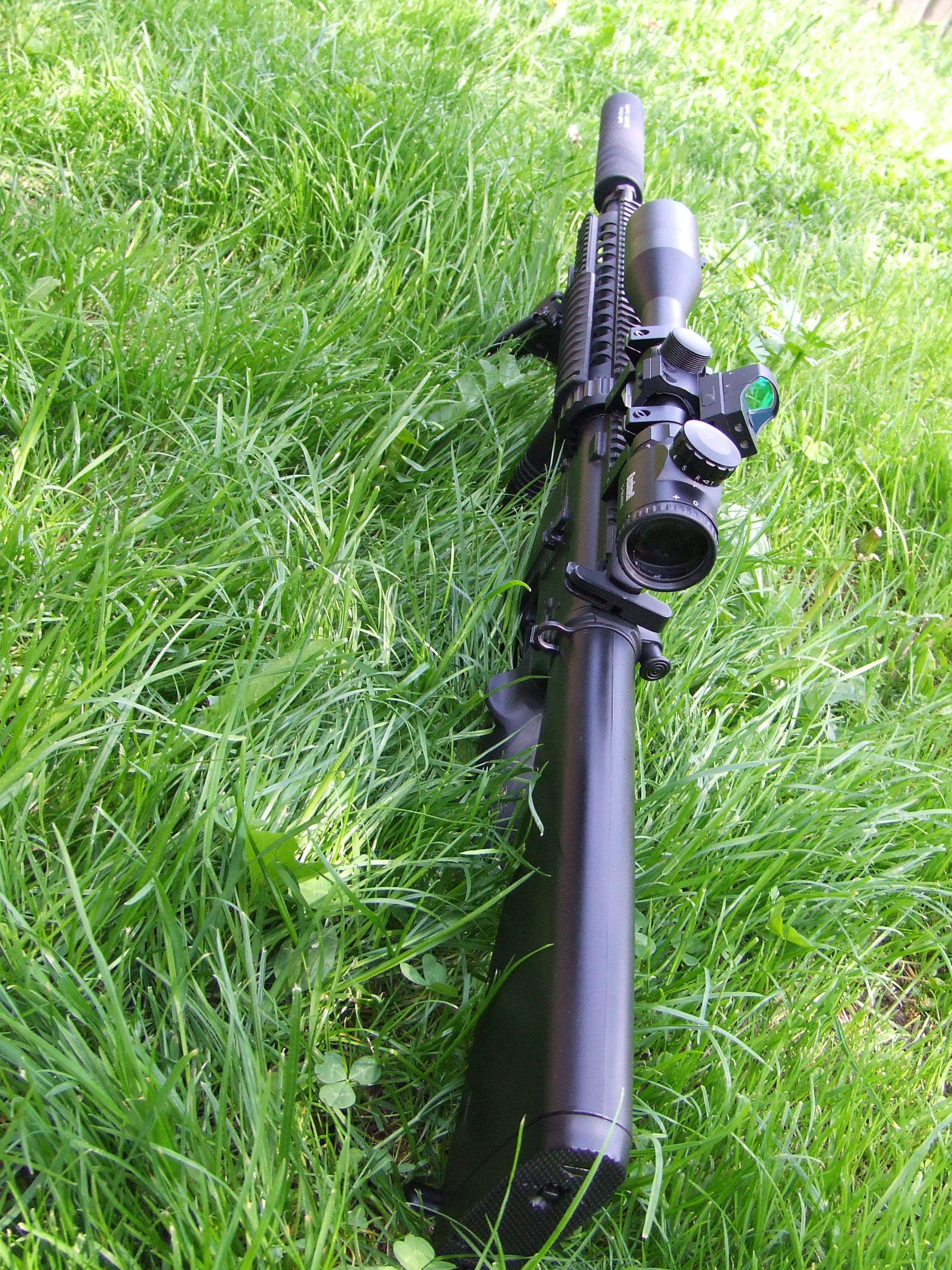 mk12 - 165m/s+ na sp140 a 180m/s+ na sp160 - x high tech cnc mech - hlava pístu ASpro, válec GD, hlava válce ASparts, tryska ASparts - komora ProWin + vlastní centrovací kroužek s osazením + bilá AT guma - hlaveň Prometheus 510mm - kola SHS 18:1 - píst AT - motor GD s SHS pastorkem na GD - trn AT - kabeláž s extrem advanced procesorovkou od Jefftron - pružina momentálně sp140 GD (pokud dám kola 100:300 běží někdy i na sp160) Doplňky: leupold mark 4 m3 3.5-10x40 + krytky butler creek, sklopná mířidla, vltor gas blok, harris bipod 6'' - 9'' , peq15 Mk12 je jen předělaná m16. Přehazuji jen upper. Příloha:
