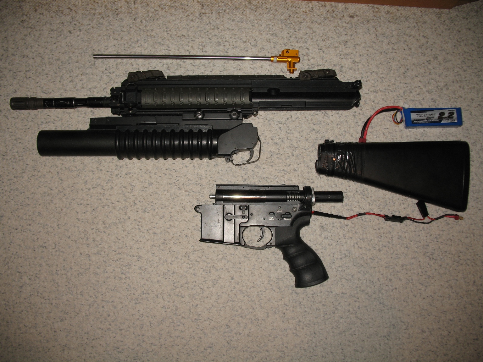 Uvnitř: SRC hlaveň,JG komora, GP guma,SHS CNC mech,Guru vzduch a píst,GD120, GD trn,SHS 18:1,FT motor(GD magnety,GG armatura),silikonový kabely,mosfet...135 - 140ms Příloha: