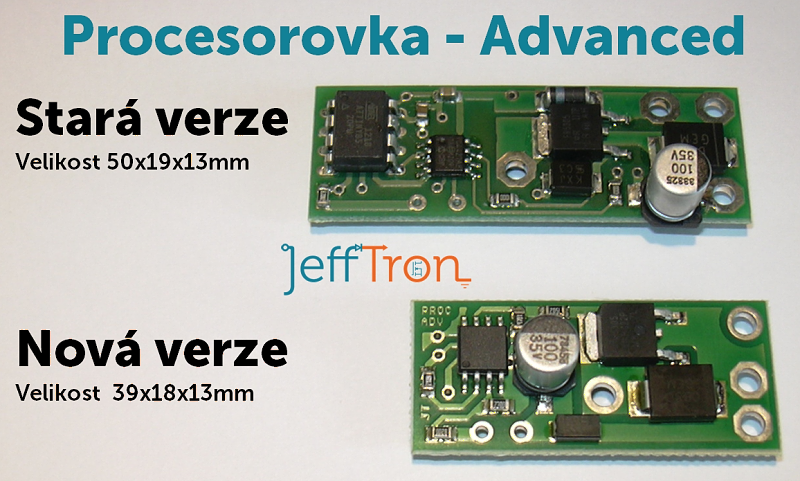 Představuji Vám nové rozmístění součástek u Procesorovky - Advanced se SMD mikroprocesorem, díky čemuž se délka zařízení zkrátila o 22%.Cena za zařízení se nemění. Tuto novou Procesorovku - Advanced můžete ihned objednat v JeffTron eshopu v samostatné verzi i s univerzální kabeláží: http://www.jefftron.cz/Procesorovka/Pro ... anced.htmlhttp://www.jefftron.cz/Procesorovka/Pro ... elazi.html