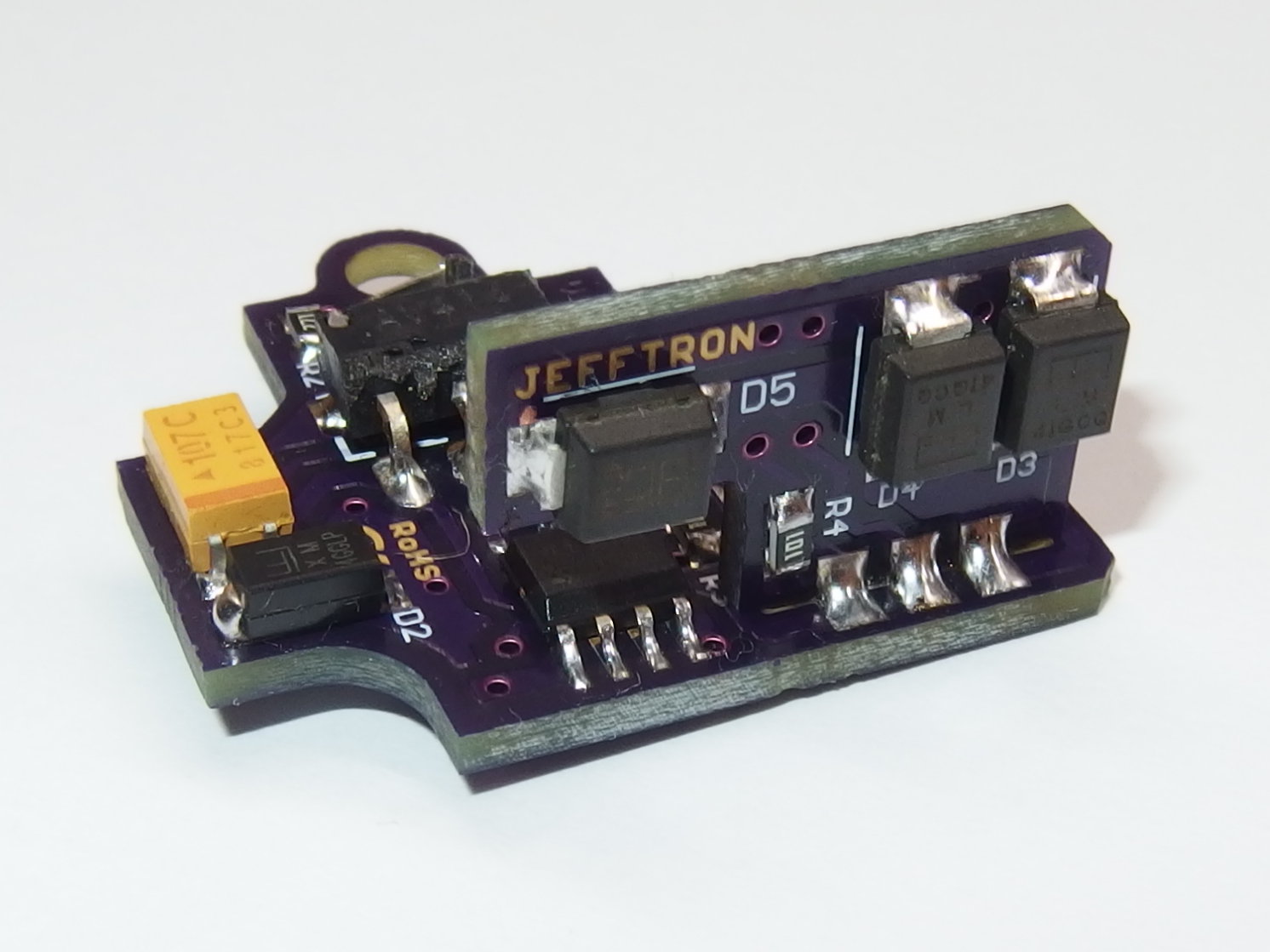 - Jak je na tom s odolností proti kapalinám: Ja bych to tak cerne nevidel, co jsem servisoval zbrane, tak spinace jsou suchy. Nicmene pri testech nikdo nehlasil problem, ani ja po pulroce odladovani programu s procesorovkou v mechu nezaznamenal problem. Kazdopadne planuji, ze verze s univerzalni kabelazi bude mit na sobe ochranny lak (stejny jako vsechny jefftron zarizeni s univerzalni kabelazi), ktery soucastky spolehlive ochranni proti vnejsim vlivum (mikrospinace nelze lakovat). Nelze lakovat ani samostatne zarizeni, protoze je pak pajeni vodicu na lakovanou desku obtizne.