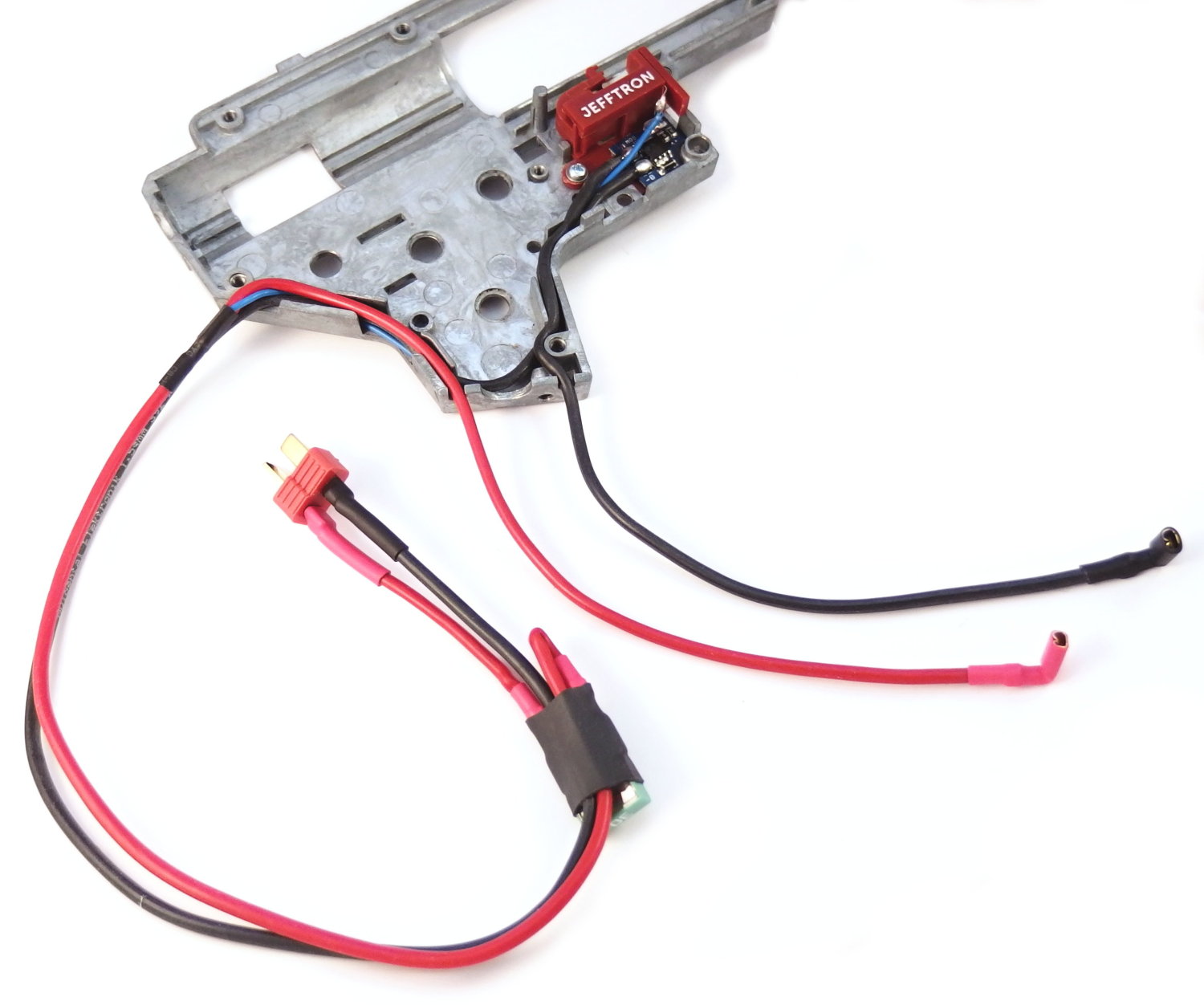 Představuji Vám kompletní kabeláž s Mosfetem-V2, která je uzpůsobená pro baterii v pažbe s DeanT konektorem. Není třeba nic pájet. Můžete zakoupit v Jefftron obchodě za cenu 817 Kč: https://www.jefftron.cz/mosfet/mosfet-v2-do-pazby