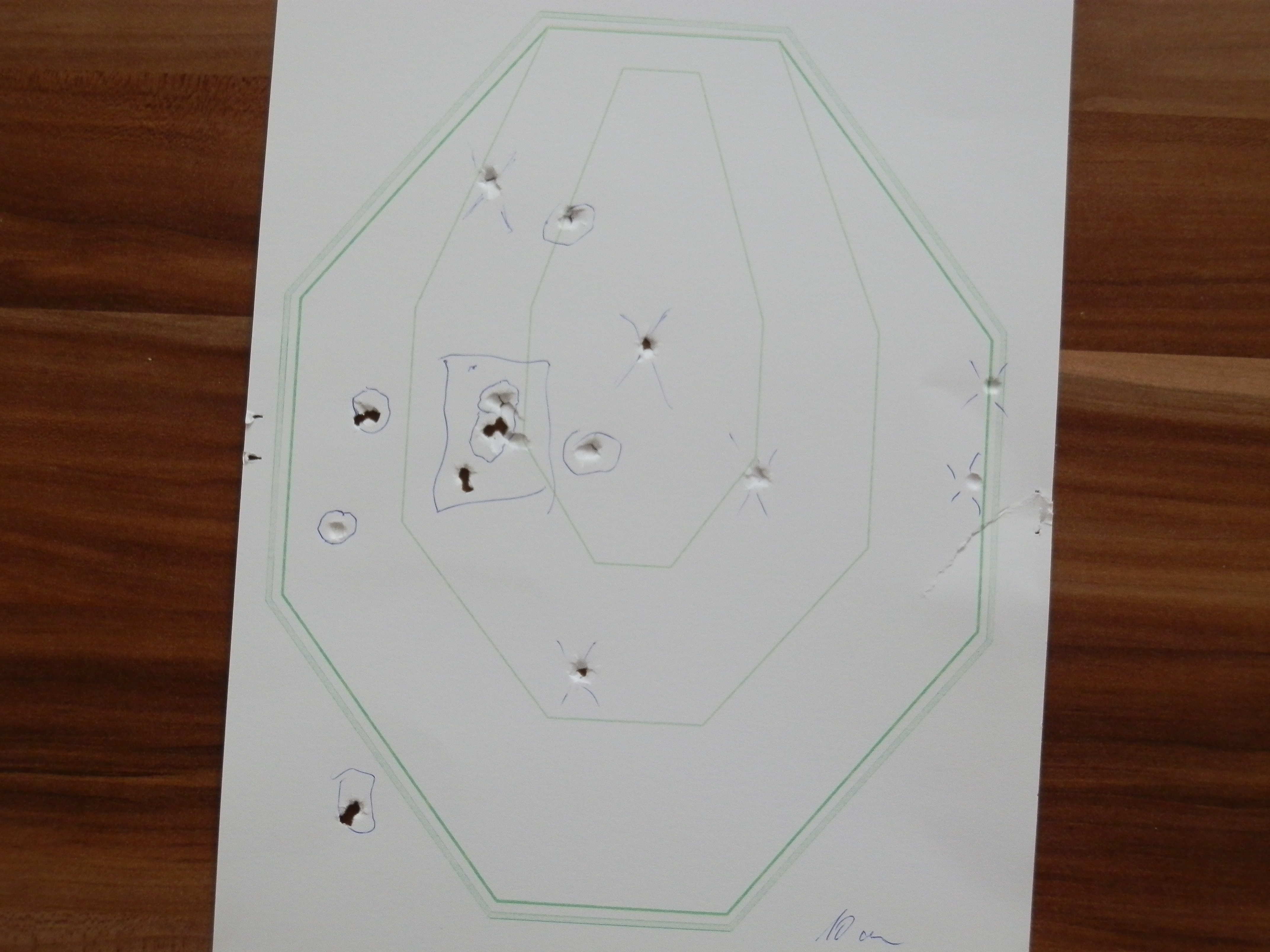 Ešte by som pridal nejaké výsledky zo streľby Terč formát A4 veľkosť ALFY 60 x 128 mm 3 série 6 striel 5m P99 AS Marusen 1. séria: 1xA + 4xC + 1xD=18 čas 5,91 s Hit 3,04 2. séria: 3xA + 1xC + 1xD + 1xM = 9 čas 4,29 s Hit 2,09 3. séria: 5xA + 1xC = 26 čas 9,2 s Hit 2,82