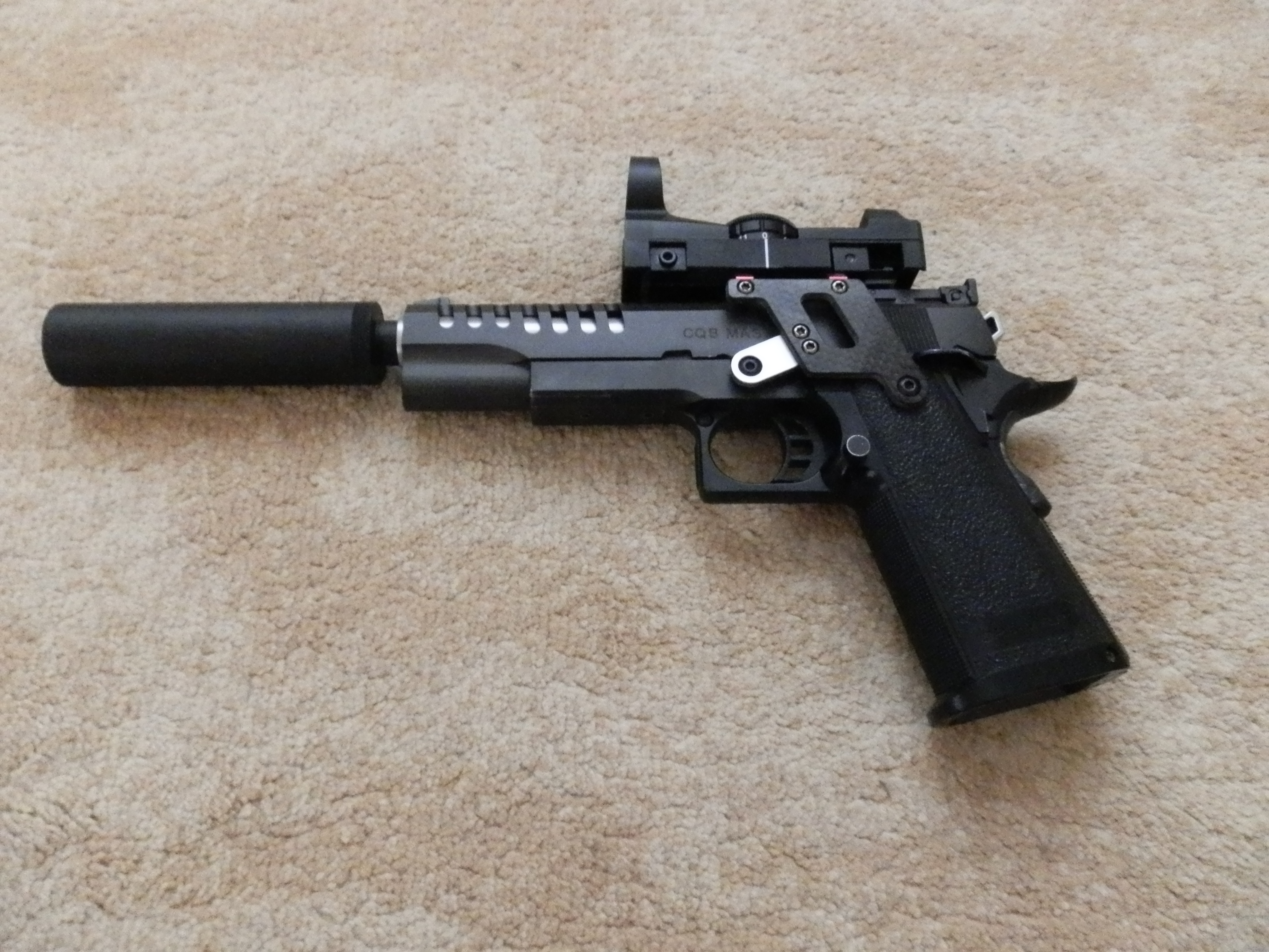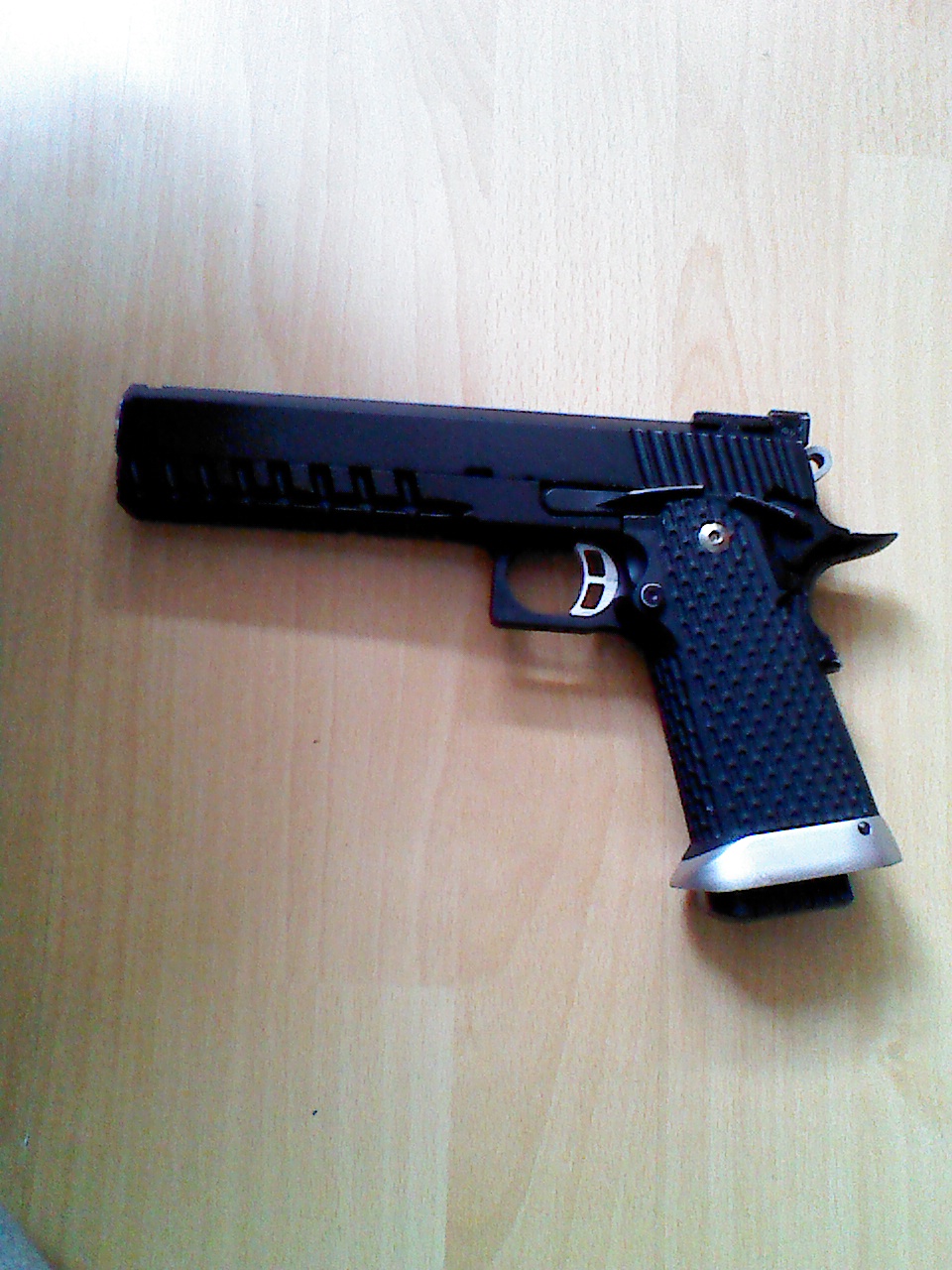 Hi-Capa 5.1 chrom Originální povrchovka kovových částí nic nevydrží, v současnosti jsou všechny kovové díly začištěny od otřepů, okartáčovány a vyleštěny dremlíkem. Klasické úpravy gripu v oblasti lučíku, původní povrch opájkován, doplněny šroubky a magwell. Co se týká ostatních úprav, tak prozatím skromně, upraveny originální ventily v zásobnících, zásobníky dostaly fialové gas route nineball. Světlovodná muška, odlehčený plug a 150% bicí pružina, momentálně je instalována originální vratná pružina, se silnější a plynem 144a nefungovalo stoprocentně nabíjení. Zip