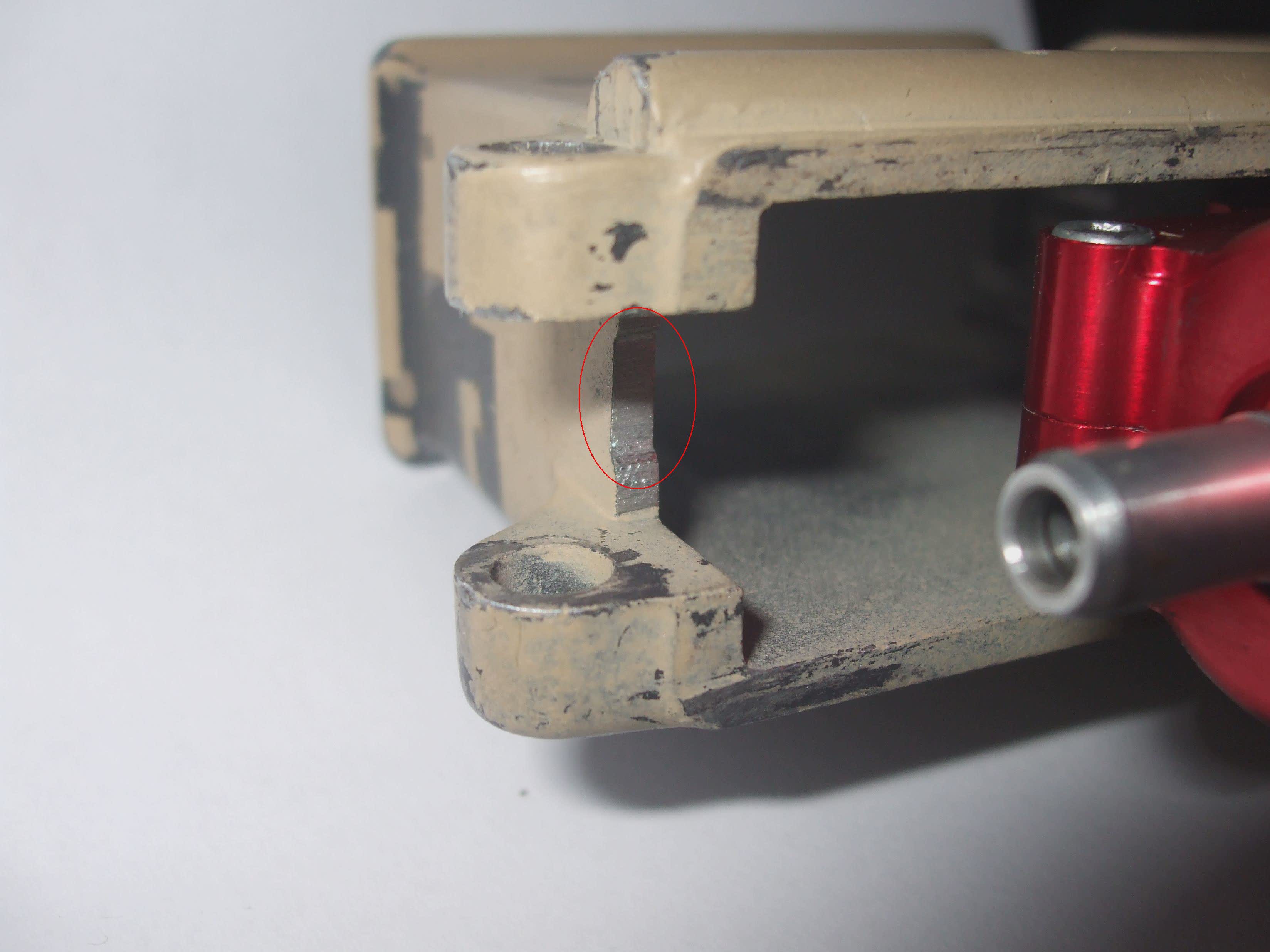-Díky delší trubici pro lepší otevření zásobníku, se komora dostávala do kontaktu se spodní částí těla, při zasouvání částí těl do sebe. Musel jsem o pár desetin zbrousit tělo (viz fotografie), aby ke kontaktu nedocházelo, pak tělo s komorou bez problému složit.