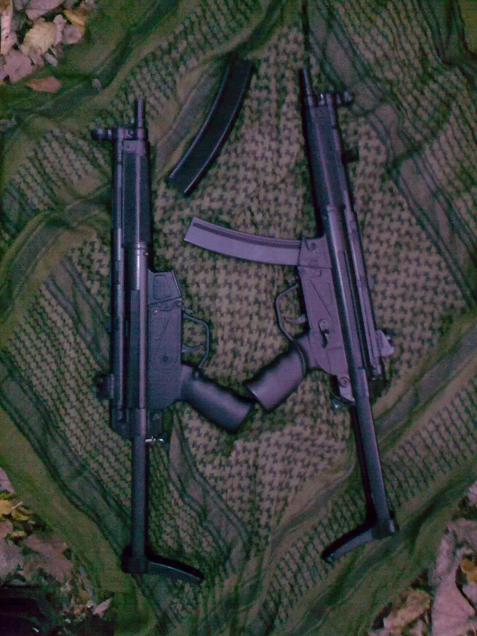 Další upgrade(jak pro koho) je odmontování kolíku(je to taková pružinka a kolík, ale jde to zase přidělat) , co drží pažbu ve zbrani tak, aby nešla vytáhnout,když je mezi dvěma polohami-zasunuto, vysunuto. Pažbu jde zafixovat zasunutou nebo vysunutou. Jinak jde vytáhnout. Výhoda tohoto upgradu je, že máte MP5 s pažbou, která jde nosit buď zasunutá, nebo vysunutá. Hlavně ale jde oddělat.Kdykoliv, kdekoliv, snadno odděláte a přiděláte. Oddělání pažby používám v případě CQB a hlavně při boji na metr. Ta MP5 je totiž tak „dobře“ navrhnutá, že pro člověka , co má větší ruce není držení zbraně se zasunutou pažbou moc pohodlné, téměř nemožné. Bez pažby ale není možné střílet efektivně a přesně rychlopalbu(natahuju a mačkám rychle spoušť, mířím podle toho, kam dopadají kuličky), ale zase nemusíte vystrkovat celou ruku a v budově, nebo v malém prostoru se s ní lépe manévruje. S pažbou je to zase lepší na delší vzdálenosti. To pak se zbraní jde střílet podle dopadajících kuliček a hlavně se nemusí tolik mířit. Jakmile se naučíte mířit celou zbraní, máte vyhráno. Samozřejmě, že s pažbou se zvedne i přesnost rychlopalby. Nejlepší je našroubovat si tam sklopnou pažbu z MP5 PDW nebo MP5A5, k čemu se časem dopracuji.